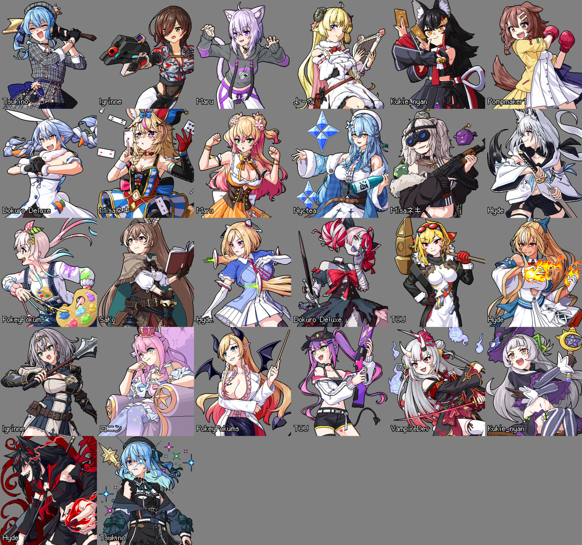 A selection of some of the art I created for Elite Exorcist Miko. Much of the art is done by me, but I am receiving help from many other artists, particularly for backgrounds and character portraits.Owing to the game's nature as a project based off of hololive production, much of the art here, primarily character art, is based on existing designs.