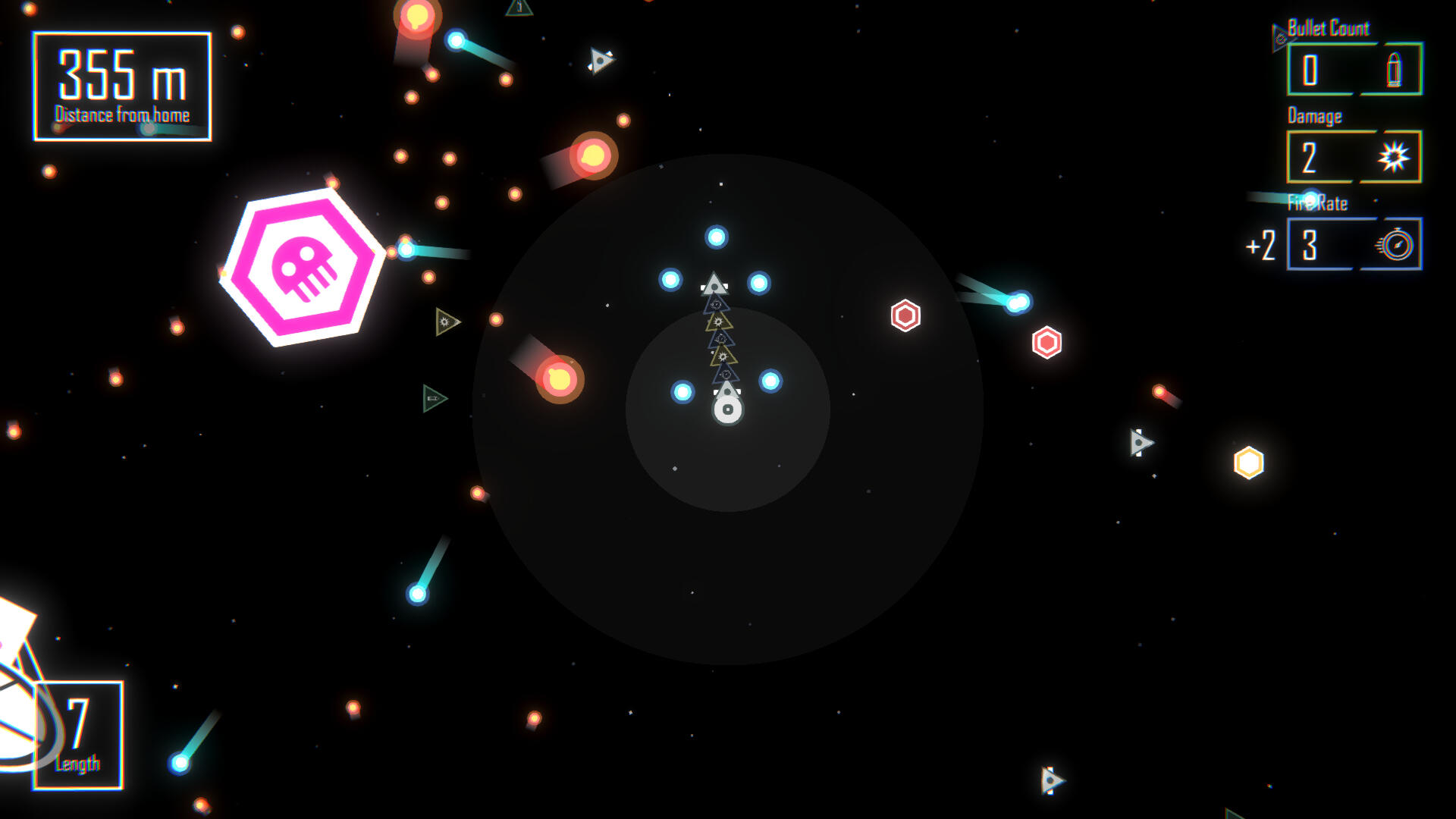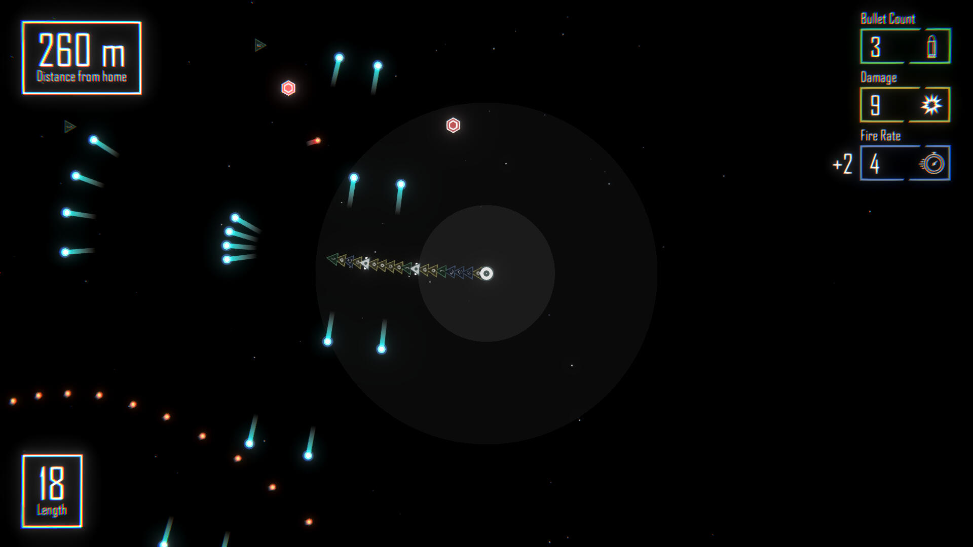 Sapce Snake (spelling intentional) is a shoot 'em up prototype developed in Unity, where the player controls a backwards-shooting ship that collects parts for enhanced firepower and an elongated body.This game was developed in a team with Ata Dogan, Ashwin Kamath and Gabriel Duarte. It began as one of many prototypes, and was polished over the course of a semester. I designed and programmed player/enemy mechanics and interactions, and was in charge of FMOD implementation and sound design.