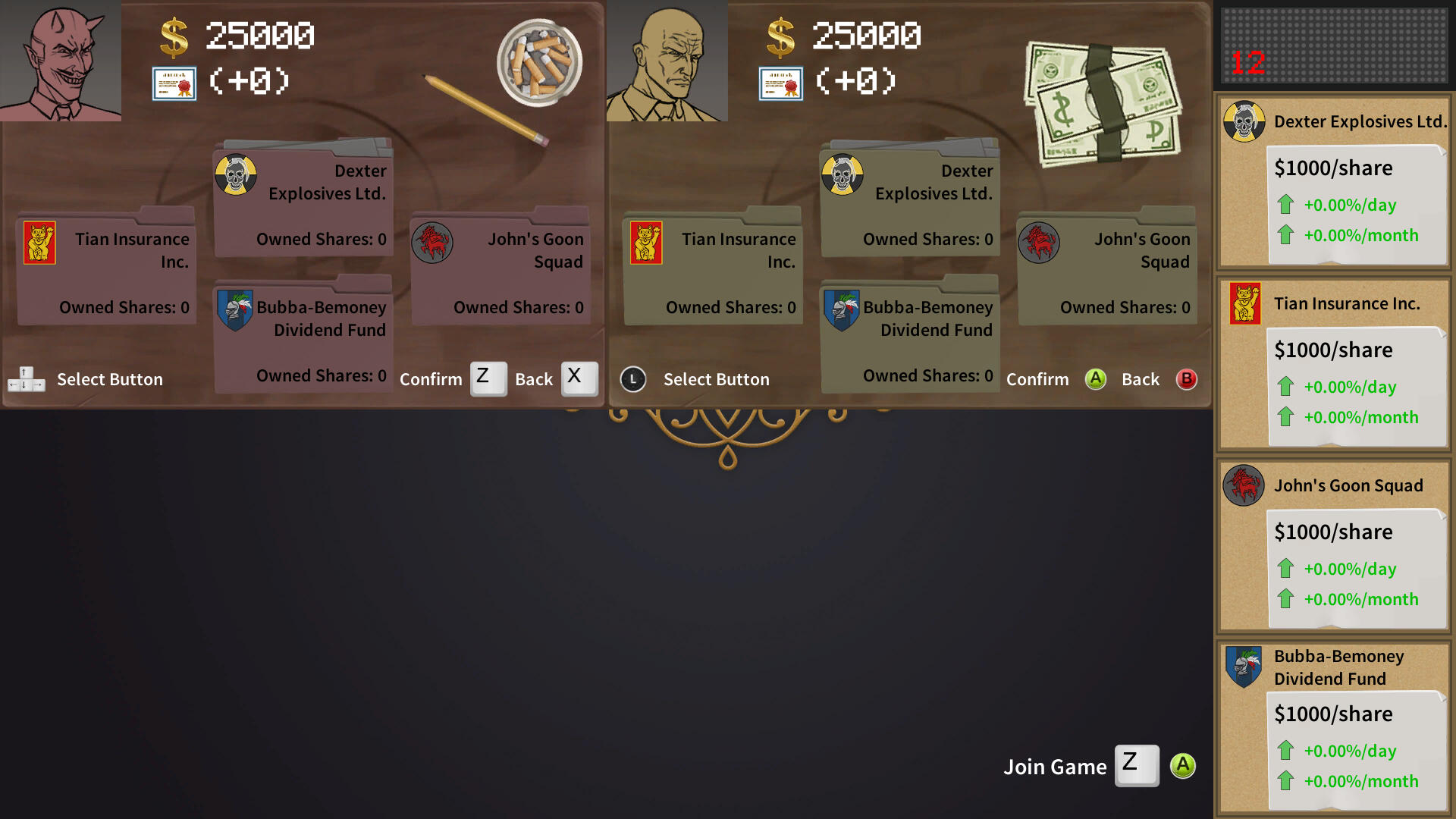 Some Stock Game is a 2-4 player competitive stock trading game where the goal is to earn $1 million before other players do. To this end, one must invest in shady corporations and play dirty if they are to pull ahead.Players may invest in 4 different companies by buying their shares, contributing to their growth and improving their unique services. Shares can then be sold to return a profit if their value had increased since the time of purchase. Players may analyze trends to determine their best course of action while actively impeding their rivals.This game was developed in a team with Dexter Truong, Zhe Yue and Nicola Battista as part of an assignment on economic systems where at least 2 resources were required to interact in complex ways. I directed and designed this project, and led the game’s programming.